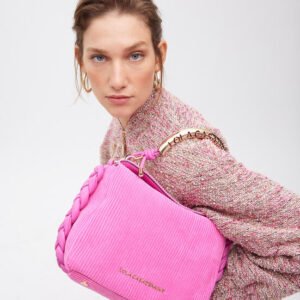 - Confeccionada en material de alta calidad, cuenta con detalles trenzados y un cierre seguro.