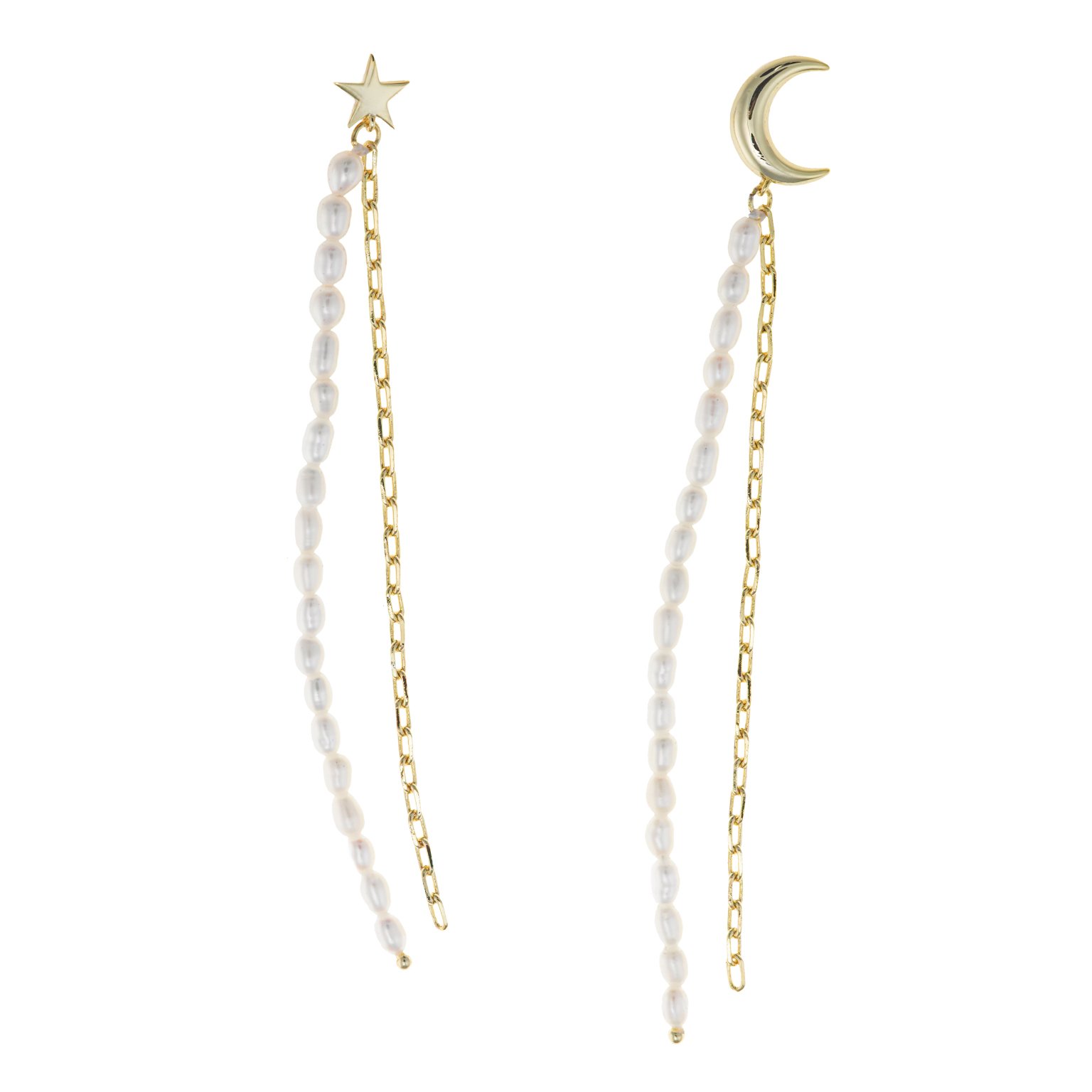 PENDIENTES LARGOS PLATA CHAPADO DORADO CON PERLAS BLANCAS SALVATORE 164A0131