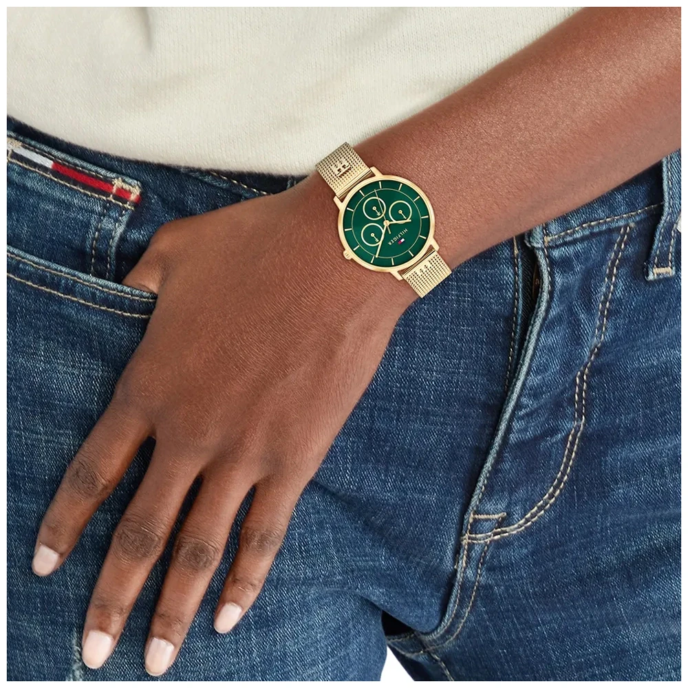 RELOJ DE MUJER MALLA MILANESA DORADO CRONOGRAFO ESFERA VERDE TOMMY HILFIGUER 1782880